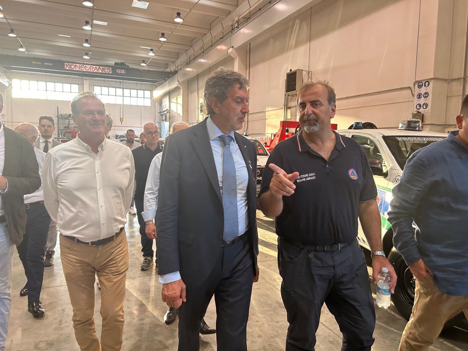 “Oltre alla dotazione di mezzi speciali muniti di attrezzature antincendio” ha spiegato Casinghini “prosegue il rinnovo della Colonna Mobile regionale che prevede anche la fornitura di attrezzature per l’assistenza alla popolazione”. Dopo la consegna dei mezzi, Marsilio ha effettuato una visita all’impianto della TEKNE, l’azienda abruzzese specializzata nella progettazione e allestimento dei veicoli industriali, speciali e militari.