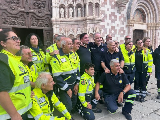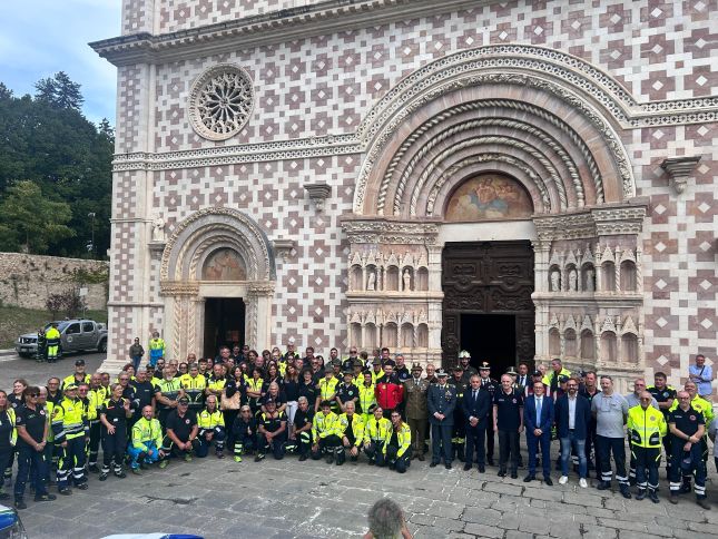 Al termine della messa, Mons. De Paulis ha impartito la benedizione a tutte le persone presenti e ai volontari, alle volontarie e ai mezzi della Colonna Mobile della Protezione Civile regionale, affiancati da personale e mezzi dei vigili del fuoco, che si sono fatti sentire accendendo le loro sirene questa volta non per segnalare un’emergenza, ma per sottolineare la loro presenza costante per portare sicurezza e aiuto. La festa di San Pio da Pietrelcina, proclamato protettore della Protezione Civile nel 2003, è diventata negli anni un appuntamento fisso per il mondo del volontariato e delle istituzioni impegnate nella gestione delle emergenze. La scelta di celebrare questa ricorrenza nella città dell’Aquila ha un significato profondo: la città stessa è diventata simbolo della capacità di rinascere grazie all’impegno collettivo, un valore incarnato dai volontari della Protezione Civile.