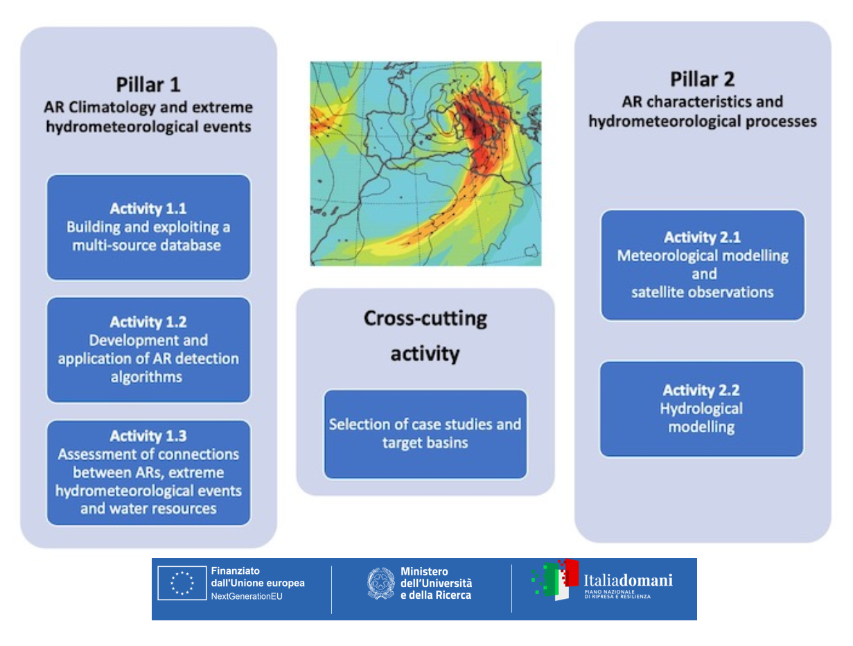I fiumi atmosferici possono essere immaginati come dei corridoi atmosferici all’interno dei quali grandi quantità di vapor acqueo vengono trasportate dai tropici alle medie latitudini. La presenza di questi flussi all’interno delle masse d’aria in movimento può determinare l’intensificazione delle precipitazioni, dando luogo ad eventi idrometeorologici severi. Storicamente studiati negli USA come tipico fenomeno meteorologico della West Coast, negli ultimi anni sono stati oggetto di ricerca anche in area mediterranea. In Italia il fenomeno sembra essere connesso all’arrivo di perturbazioni di origine atlantica e amplificato dalle interazioni con la complessa orografia della Penisola.