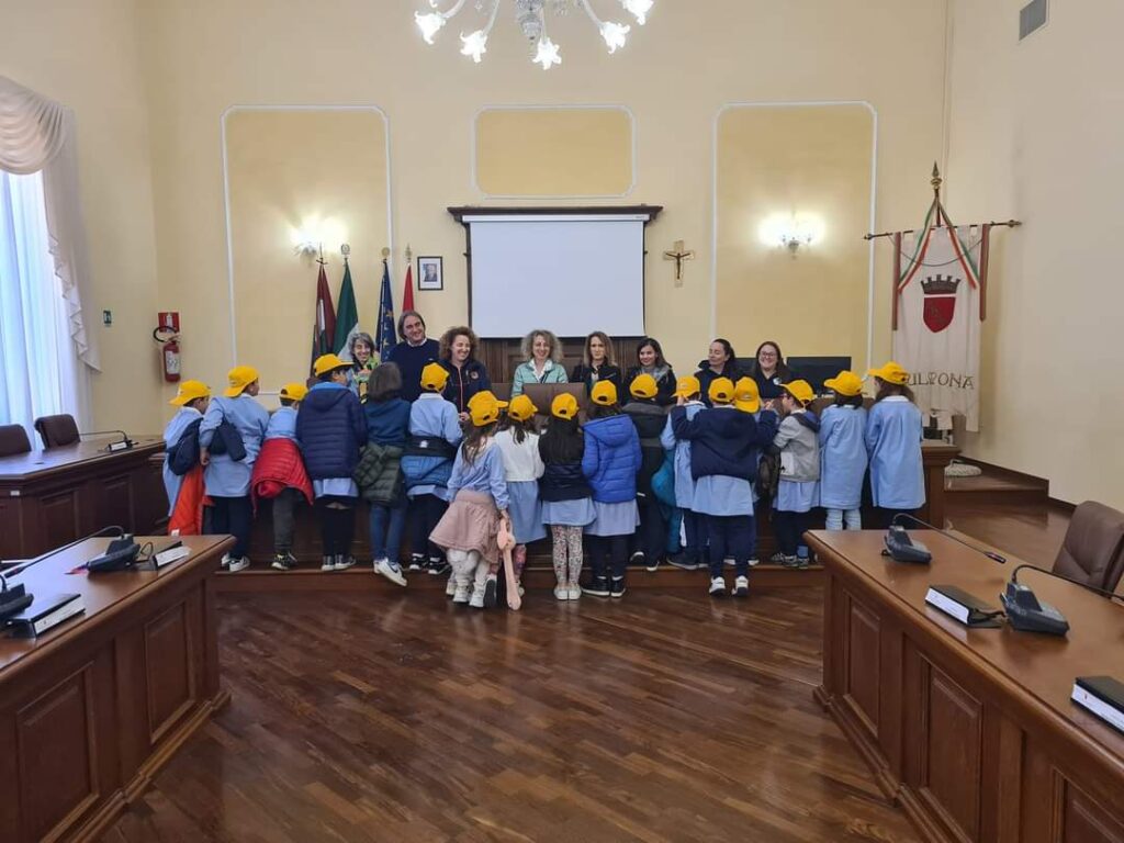 Dopo il trekking urbano per le vie della città alla ricerca delle tracce del passato lasciate dai terremoti che hanno colpito questo territorio, i bambini sono stati accolti in comune dal Sindaco e dall’assessore alla protezione civile.