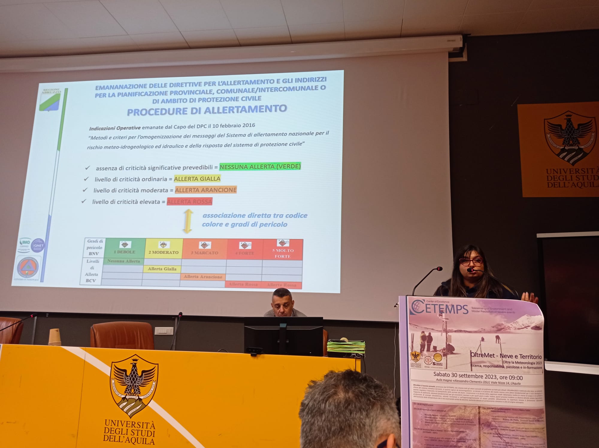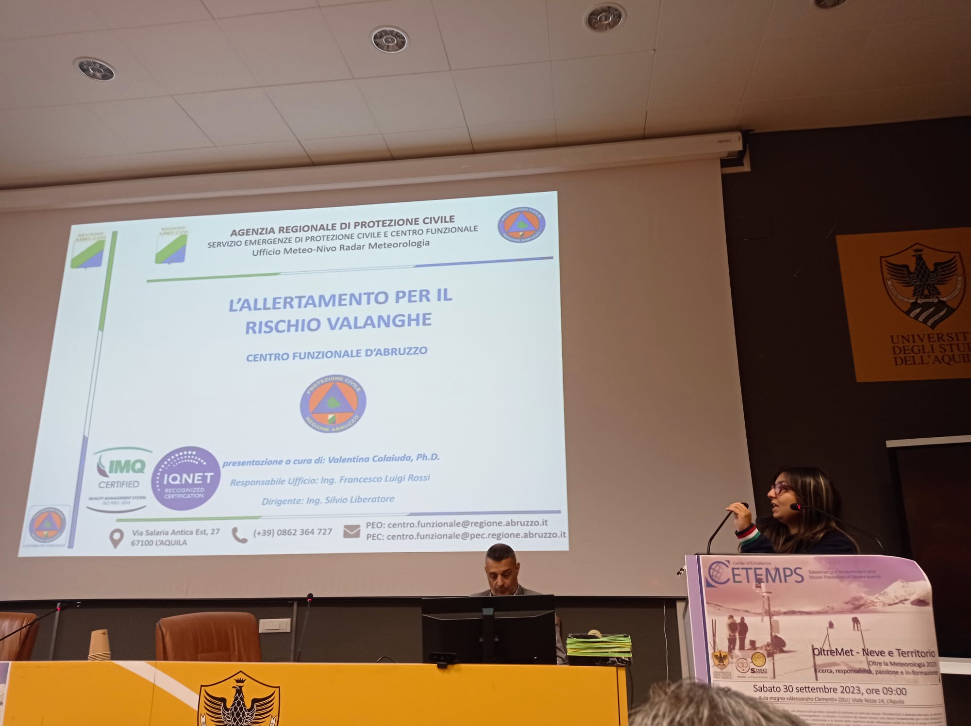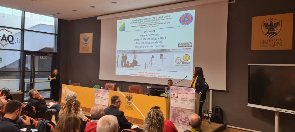 Il rischio valanghe rappresenta uno dei temi fondamentali su cui l’Agenzia di Protezione Civile della regione Abruzzo ha recentemente investito numerose risorse: il punto della situazione su questa tipologia di rischio è stato illustrato in occasione dell’annuale convegno OltreMet, oltre la meteorologia, che nell’edizione 2023 ha affrontato la tematica “Neve e Territorio”. Il convegno, a carattere scientifico divulgativo, si è svolto sabato 30 settembre 2023 presso l’aula magna del Dipartimento di Scienze Umane dell’Università degli Studi dell’Aquila ed è organizzato ogni anno dal CETEMPS, per l’evento Street Science. Questa edizione ha visto l’alternarsi sul palco di numerosi esperti afferenti a varie prestigiose istituzioni che svolgono attività di ricerca nell’ambito della nivologia, quali il Consiglio Nazionale delle Ricerche, l’Associazione AINEVA, il Comitato Glaciologico Italiano e il servizio Meteomont dei Carabinieri Forestale. L’occasione ha visto anche l’assegnazione del primo premio del concorso “Gutta Aurea”, assegnato in memoria del prof. Frank S. Marzano dall’Associazione Per Aspera ad Astra.