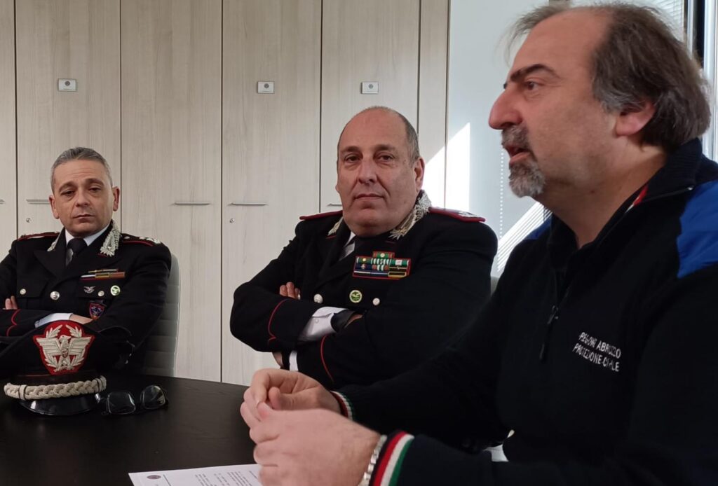 Nella foto da sn: T. Col. Donatello Cirillo, Comandante provinciale AQ Carabinieri Forestale; Gen. B.  Giampiero Costantini, Comandante Regione Carabinieri Forestale “Abruzzo e Molise”; dott. Mauro Casinghini, Direttore Agenzia Regionale di Protezione Civile Abruzzo