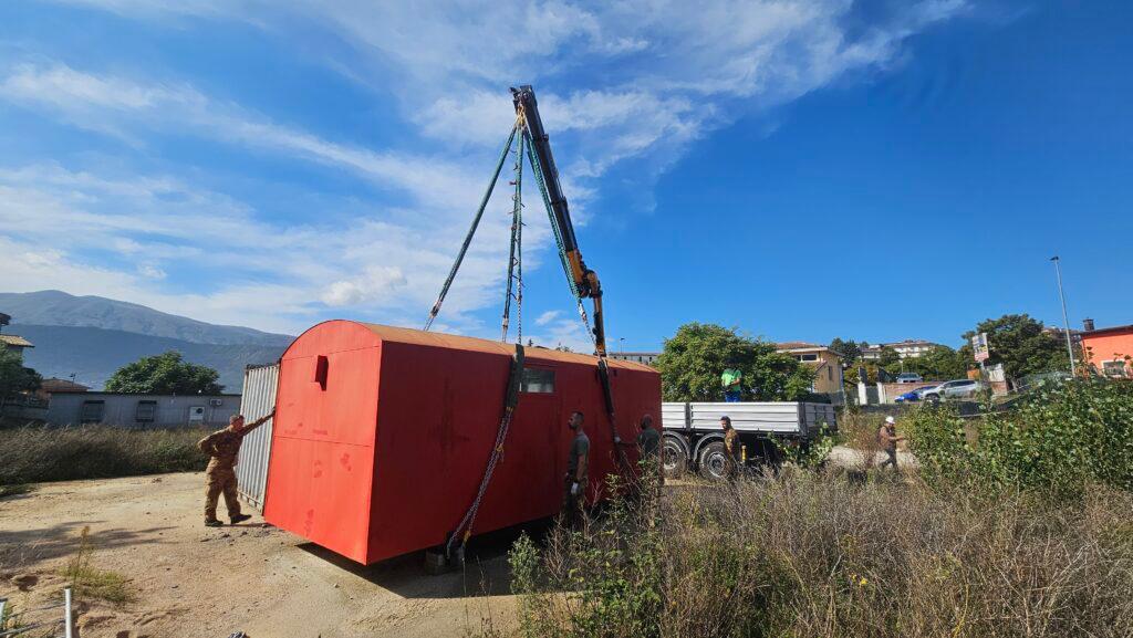 L’intervento prevede il trasporto e la collocazione sul promontorio che insiste sul Vallone della Fornaca, tra Monte Prena e Monte Camicia, a quota 1815 slm, di una nuova struttura in metallo realizzata in un unico modulo coibentato delle dimensioni di 6 x 3 metri e 2,5 metri di altezza, per un peso complessivo di 26 quintali. La struttura sarà trasportata da un elicottero Chinook CH-47F del 1° Reggimento Aviazione dell’Esercito “Antares”, aeromobile particolarmente idoneo per i trasporti pesanti in alta quota, appositamente equipaggiato per questo genere di operazioni. La struttura verrà poi fissata su una piattaforma in cemento armato già realizzata direttamente sul punto.
