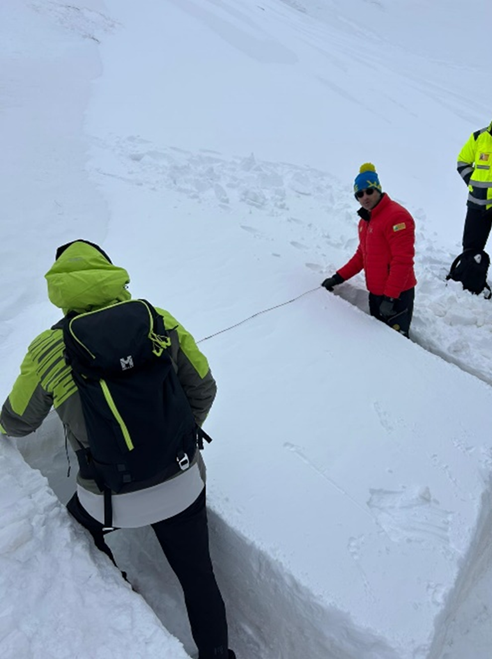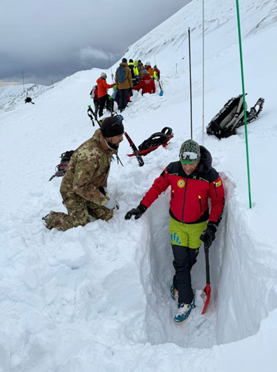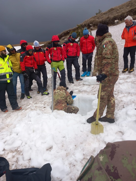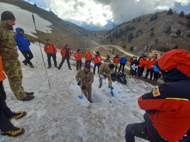 Durante la parte pratica, in parte svoltasi anche nella giornata di martedì 28 gennaio presso la località di Montecristo, i corsisti, sotto la supervisione del 9° Reggimento Alpini e dello SVI, hanno avuto la possibilità di esercitarsi in campo eseguendo una stratigrafia e valutando la stabilità del manto nevoso.